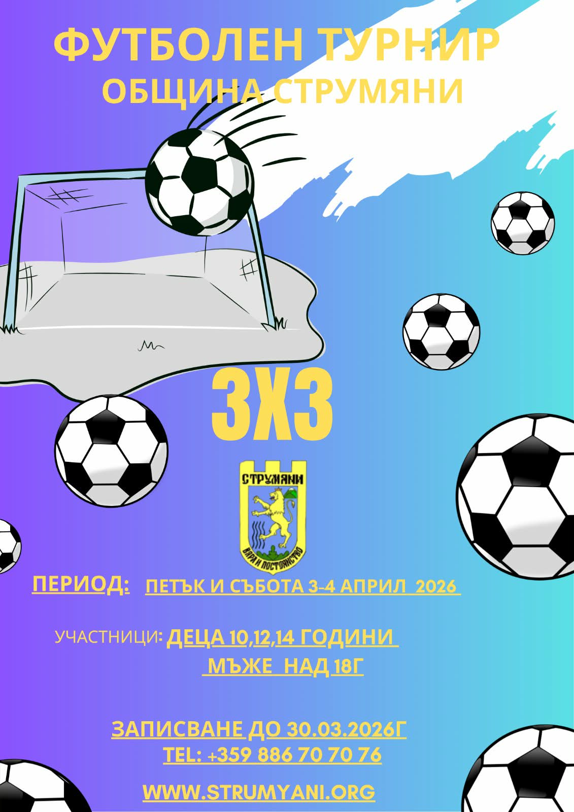 Празникът на Община Струмяни тази година ще бъде отбелязан на 4-ти април (събота) с празнична програма. Начало на събитията е в 16.00 ч. на площад "7-ми април" с. Струмяни
