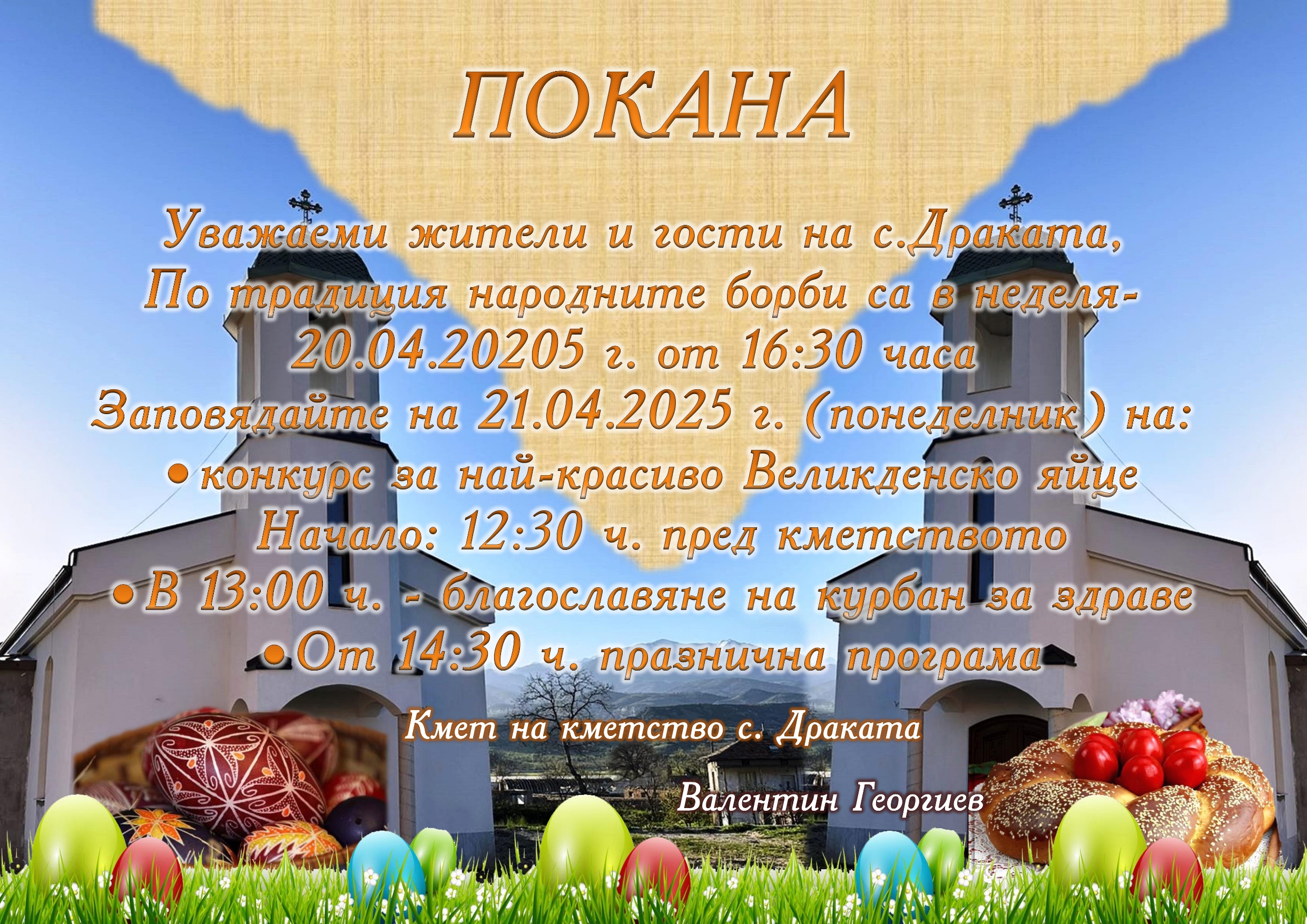 Във връзка с предстоящите светли Великденски празници, кметство село Драката и община Струмяни, организират празнични инициативи!