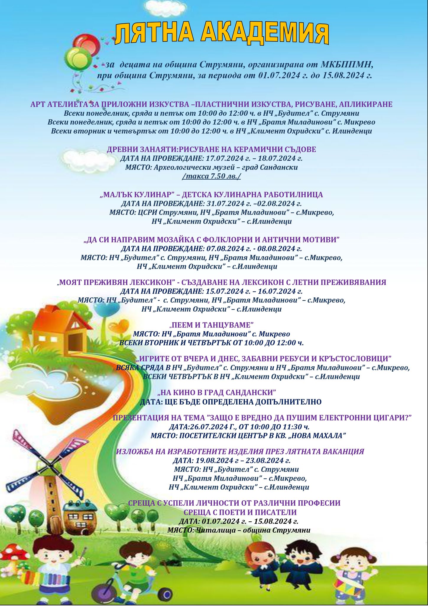ЛЯТНА АКАДЕМИЯ ЗА ДЕЦАТА В ОБЩИНА СТРУМЯНИ ЮЛИ - АВГУСТ 2024 Г.!