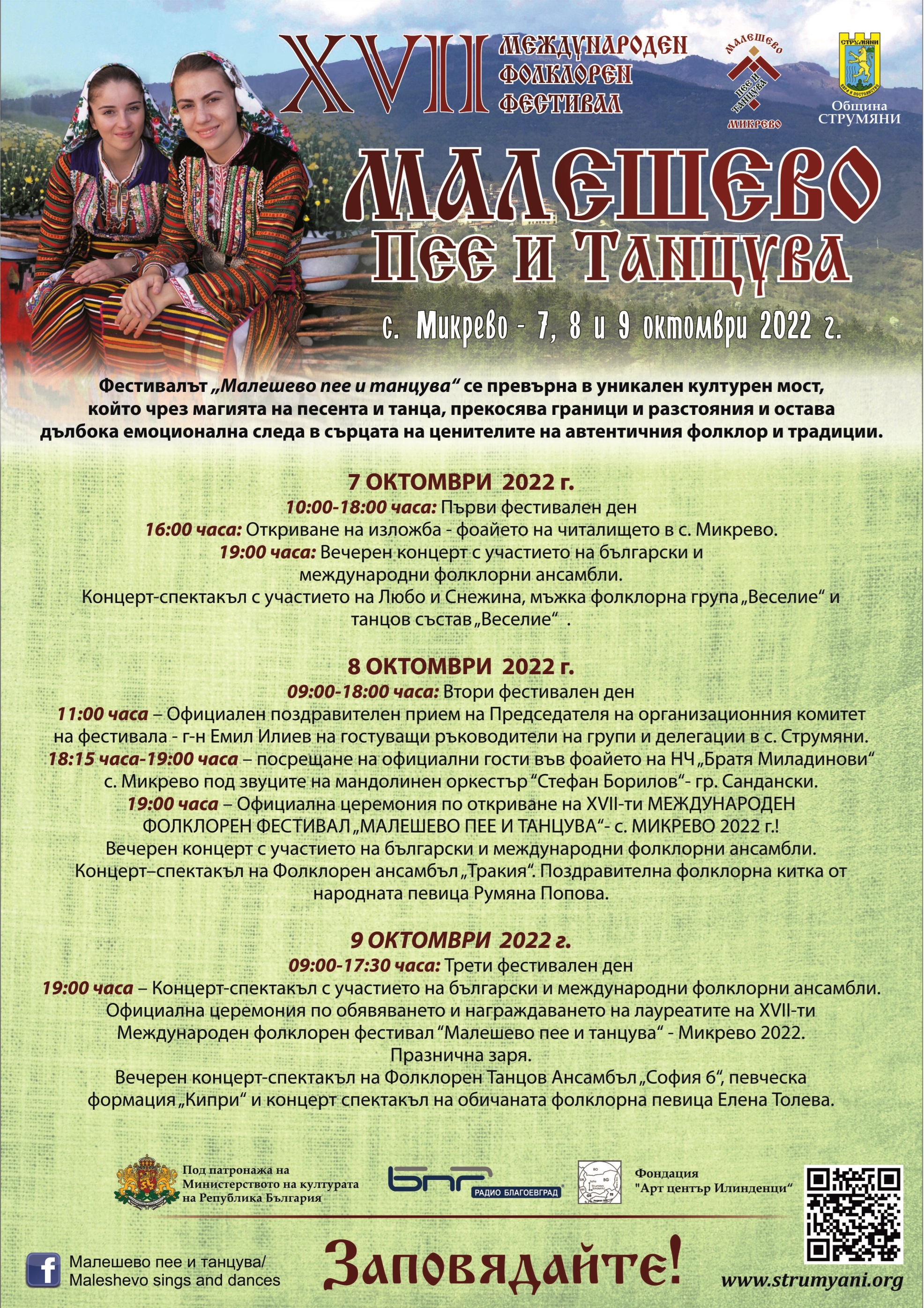 Регламент на XVII-ти международен фолклорен фестивал "Малешево пее и танцува" Микрево 2022 |