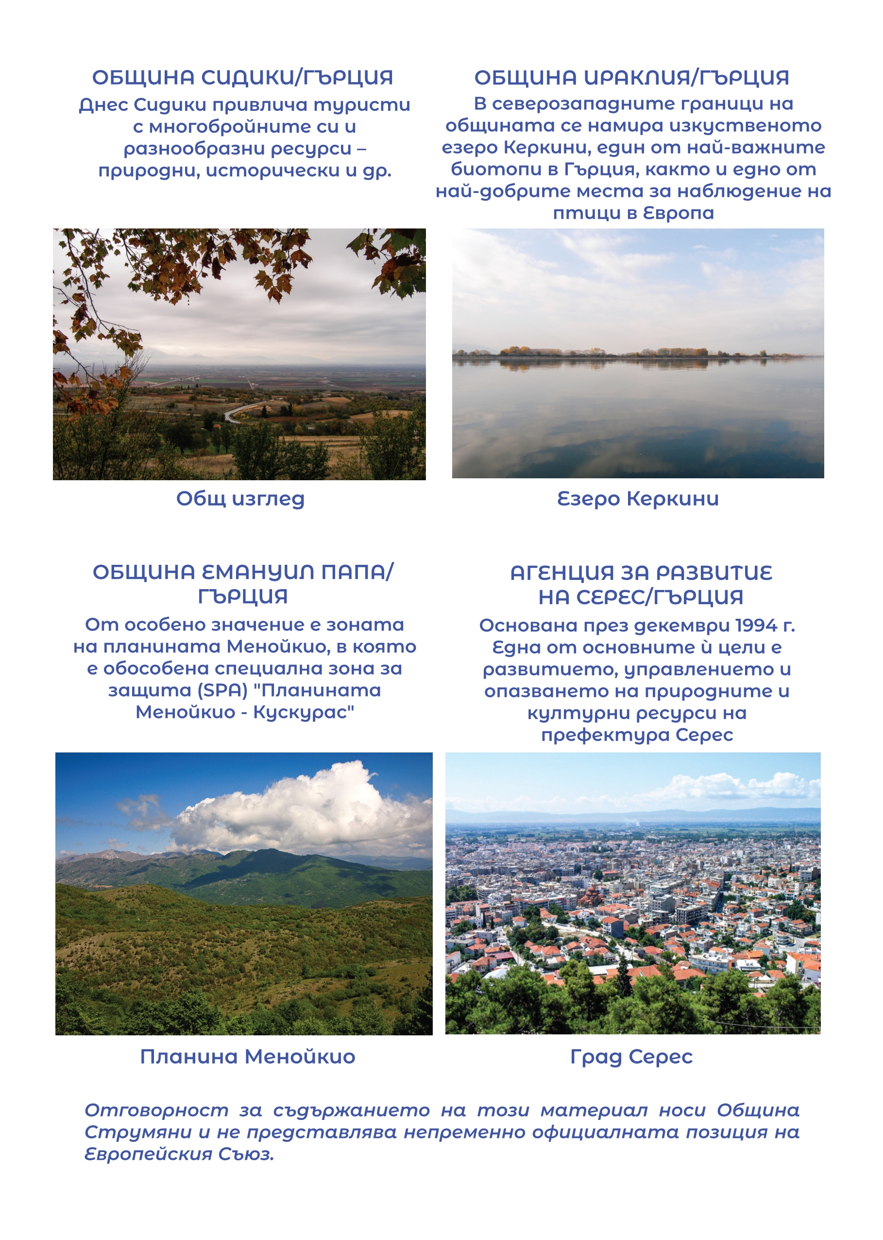 | Бенефициенти | Община Емануил Паппа Община Ираклея Община Сидики Община Струмяни Агенция за развитие на Серес - SA |