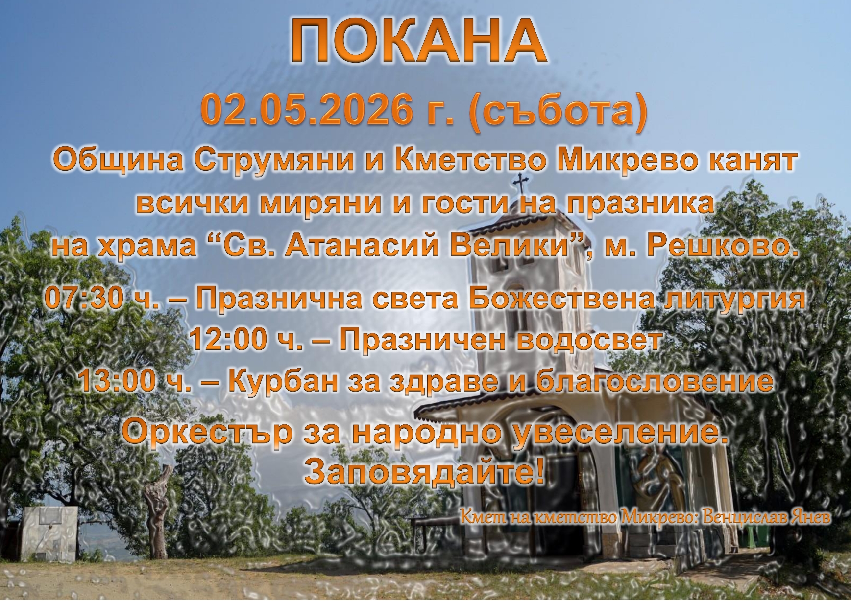 С. Драката има празник на Великден. Вижте празничната програма за 12 и 13 април. Разгледайте кадри от полагане на основния камък за изграждането на храм “Свето Възкресение Христово“ от 16.02.2023 г.