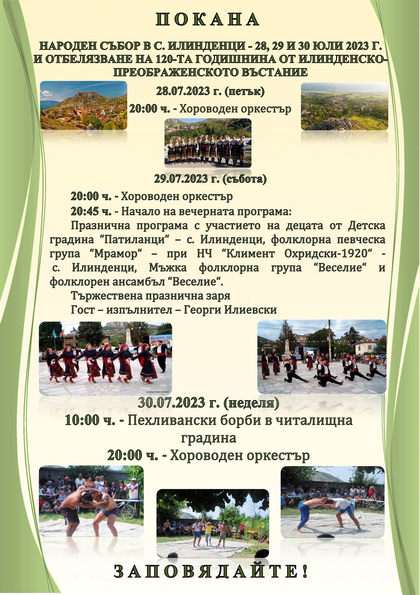 НАРОДЕН СЪБОР В С. ИЛИНДЕНЦИ - 28, 29 И 30 ЮЛИ 2023 ГОДИНА И ОТБЕЛЯЗВАНЕ НА 120-ТА ГОДИШНИНА ОТ ИЛИНДЕНСКО-ПРЕОБРАЖЕНСКОТО ВЪСТАНИЕ