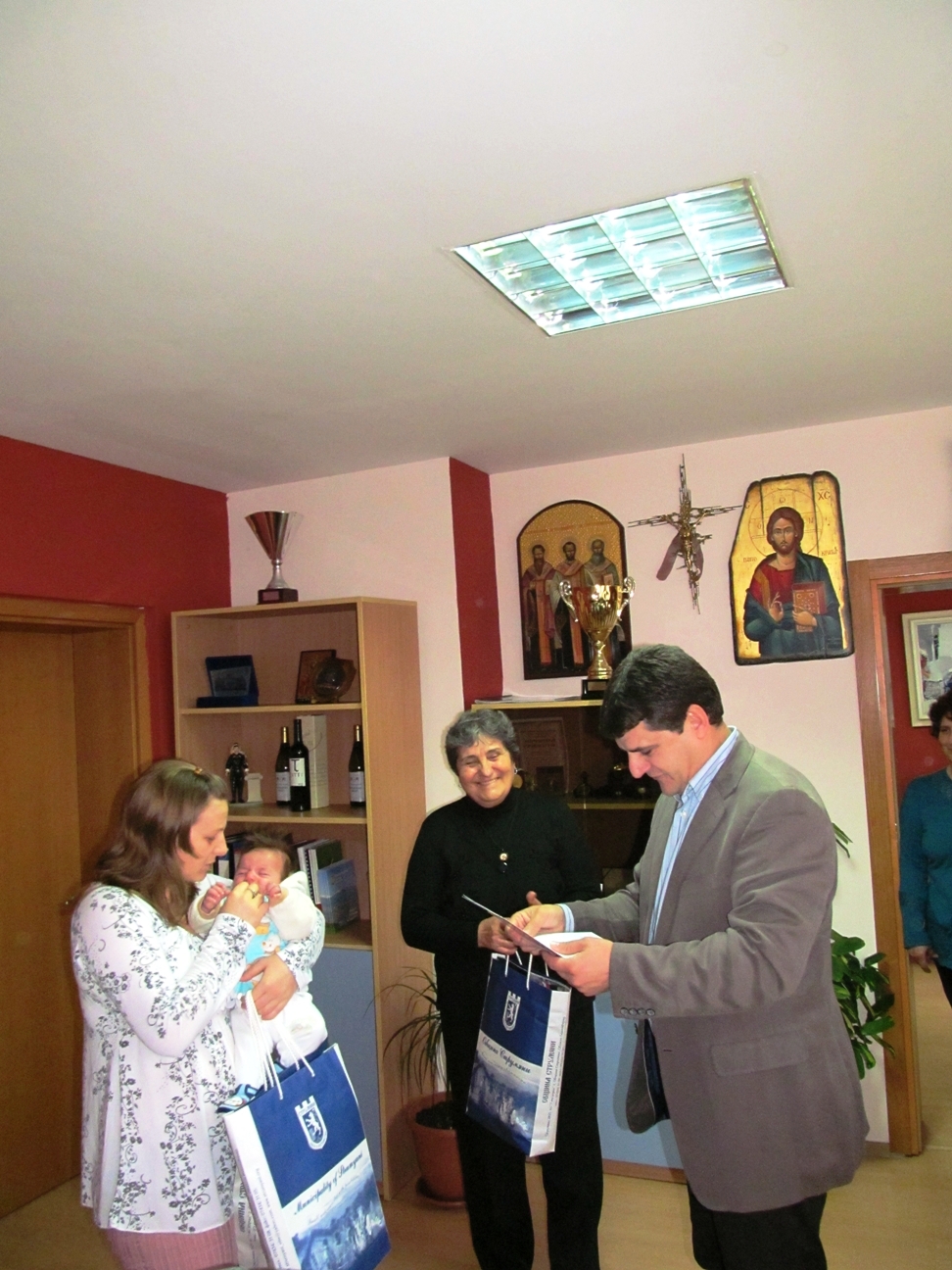 В ранното утро на Бабин ден, кметът на община Струмяни Емил Илиев посрещна майката Деси от Струмяни и нейното бебе в кабинета си, където се извърши и ритуалът „поливане”.