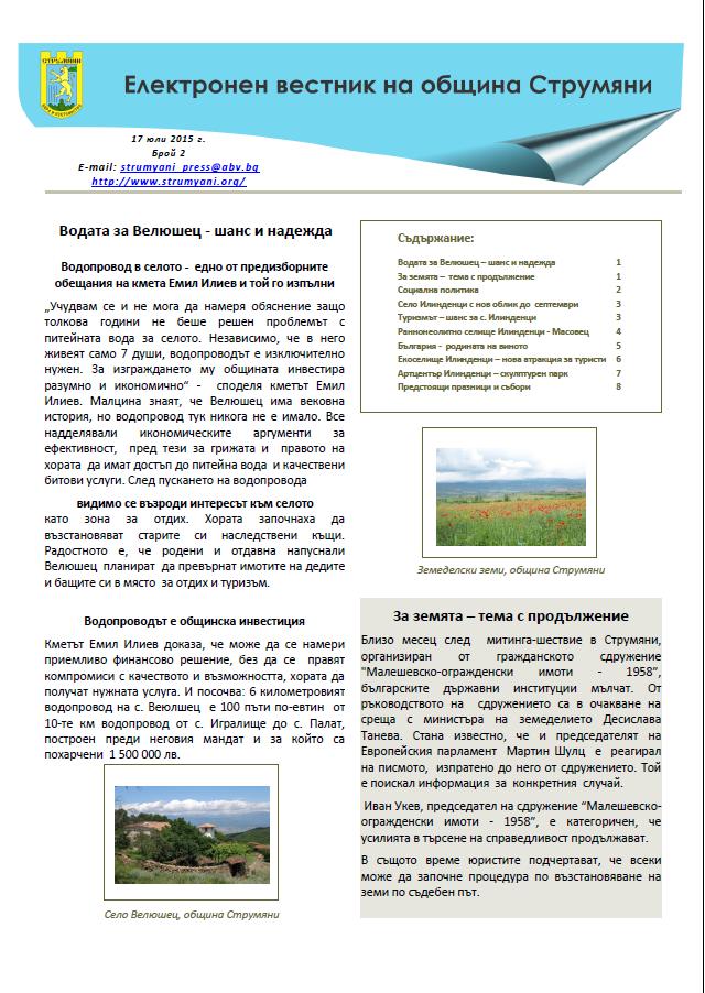 Публични регистри и други отворени данни на Община Струмяни(публикувани в портала за отворени данни на Република България)